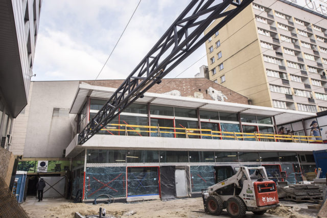 Pod koniec grudnia 2017 r. osiągnięto stan surowy zamknięty pawilonu. Wkrótce nastąpi uzbrojenie drzwi zewnętrznych w fasadzie, a klatka schodowa zostanie przeszklona. Bardzo zaawansowane są również prace instalacyjne: wykonano już niemal 90% okablowania budynku, rozprowadzono instalacje wodnokanalizacyjne i centralnego ogrzewania, a pod koniec marca zakończą się prace przy wentylacji oraz zostanie zamontowana winda.